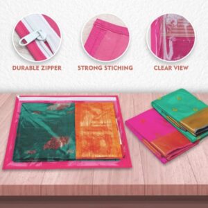 saree cover bag set of 12, saree storage organizer, transparent saree cover with zipper, garment storage bag, lehenga cover, dress material organizer.